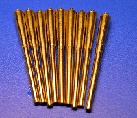 There are 21 machined brass barrels, consisting of two different calibers. There are nine (9) 381mm main guns, three for each of the three turrets. Next, there twelve (12) of the 152mm barrels for the four triple-gunned secondaries.