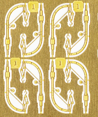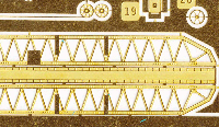 This fret has watertight doors, hatches and scuttles, all etched in a manner which allows them to be positioned opened or closed. There are also the standard replace hose and cable reels found in most photoetch sets. This set also has the track which supports the end of the catapult, which would swing from port to starboard for launching.