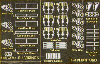 | The fret is relief etched on a .008" [0.20 mm] brass sheet. The sheet is actually relief etched on both sides, so details that are visible on both sides have a more "too-scale" appearance. The thicker brass means that the landing gear can actually support your aircraft. | |||||||||