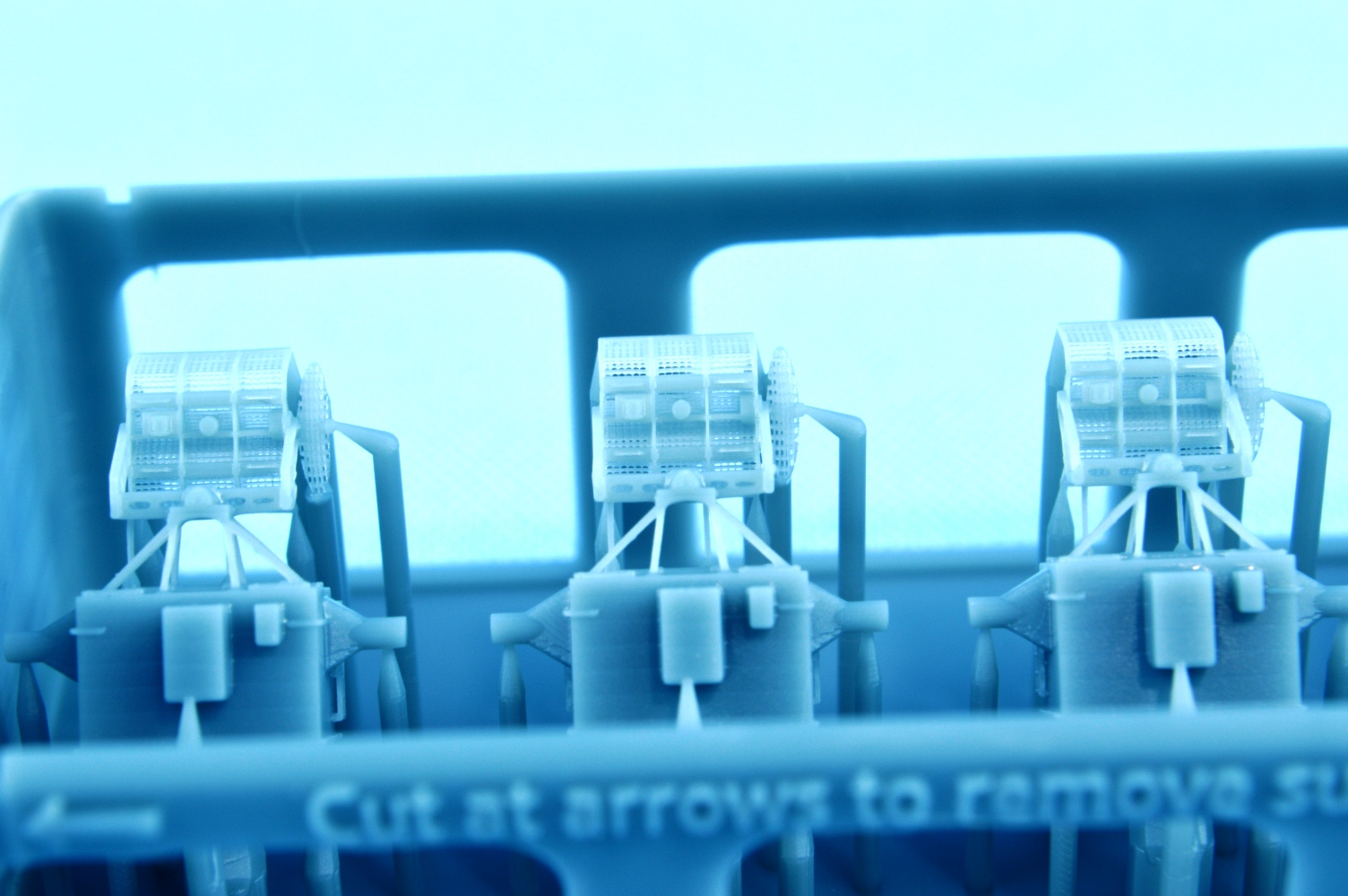 There is nice detail to be found on these directors - ladders, hatches, the supports for the Mk12 radar mount, and finally, the radar itself. The latter is finely printed, with a see through screen. On the other side of the coin, there are some print lines visible on the backside of the director. Hopefully these will disappear under a coat of paint. |