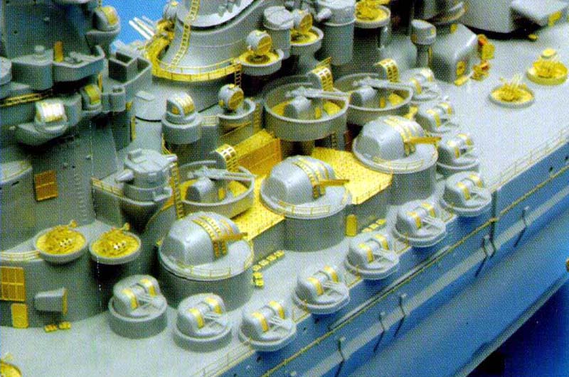 | The metal parts in this set are what really makes it stand out. Replacement main and secondary gun barrels, and anchor chain are details that will really enhance your ship. | |||||||||||