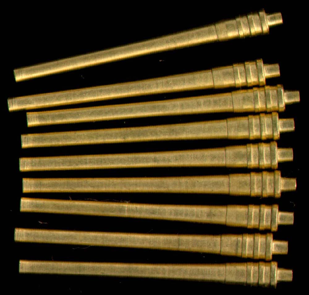 | The main gun barrels are machined from brass with realistic tapers and hollowed out ends with realistic thin walls. The barrels have a locating pin on the end to help with placement. Grooves are machined on the base and these look very much like the monster 18" guns used on the Japanese super battleships. | ![]() |