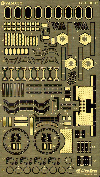 This fret includes the main gun turret detail items. The frames around the gun barrel openings and the baskets below them are well done with a relief etched bolt pattern around the frame. Hex shaped gun platforms with attached splinter shields and diamond plate floor details are among the other parts included. |