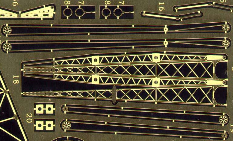 This fret includes the superstructure bar type rails. There are some with relief etching with the cross bars making the stantions really stand out. |