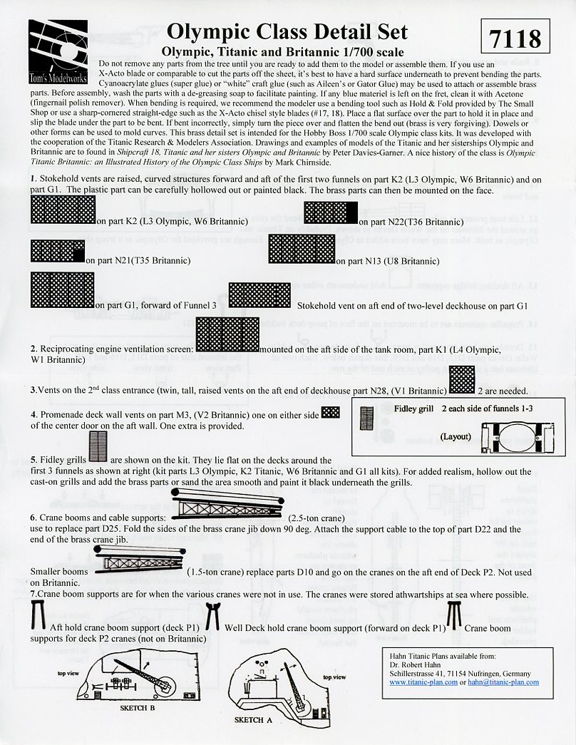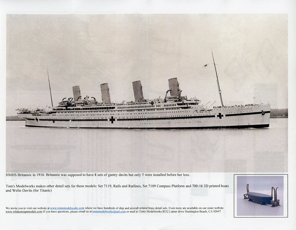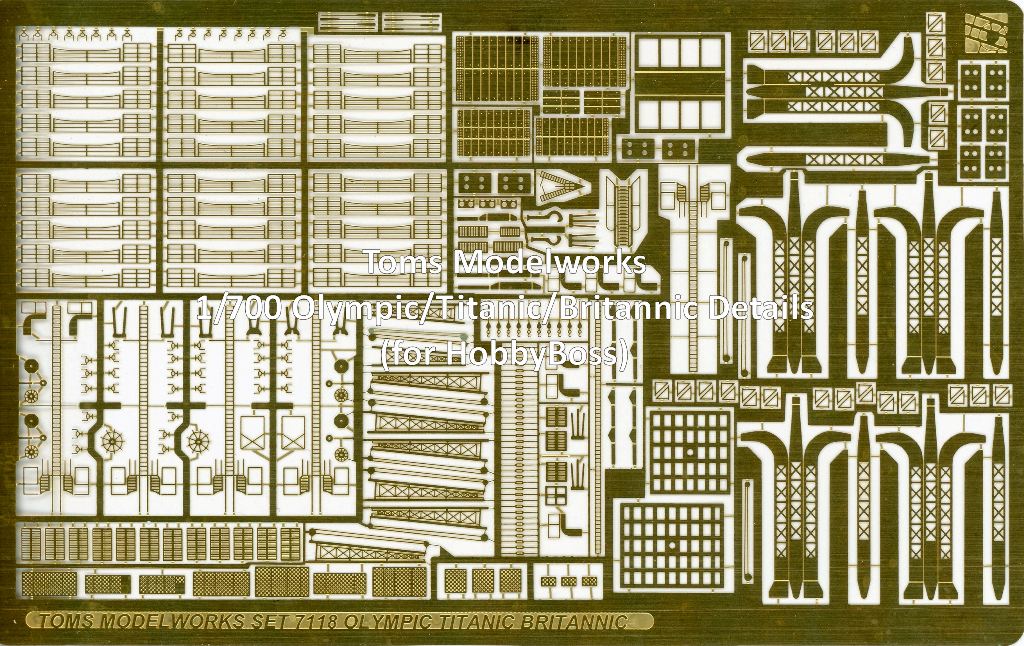 | Tom's Modelworks has released a photo-etch detail set for the famous Olympic-class liners in 1/700, Set 7118 Olympic/Titanic/Britannic Details. | |||||||||||||||||