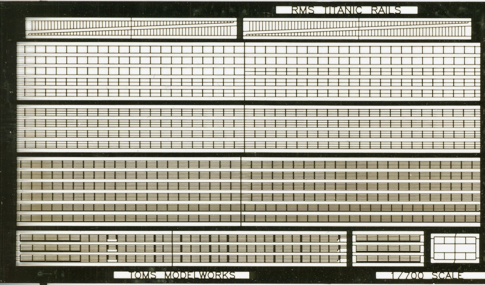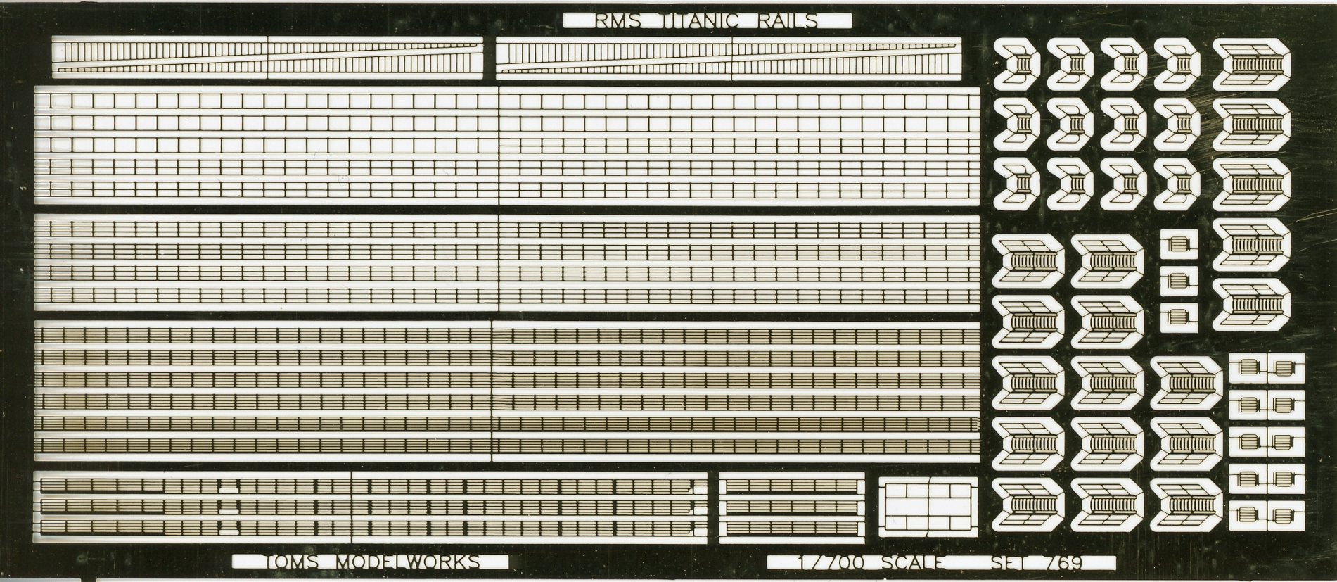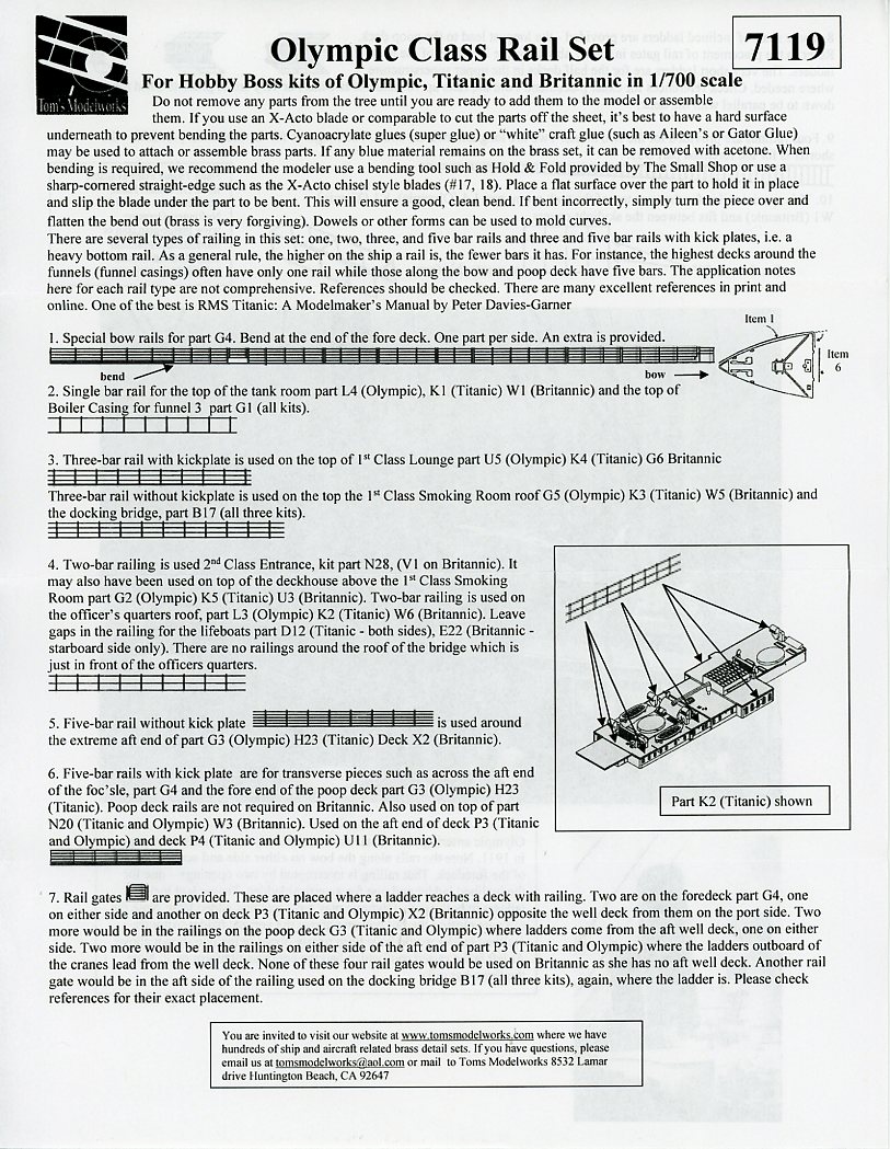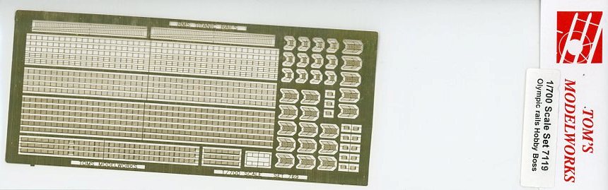 | Tom's Modelworks has released a photo-etch set of rails and inclined ladders for the famous Olympic-class liners in 1/700, Set 7119 Olympic Rails, Hobby Boss. | ||||||||||
