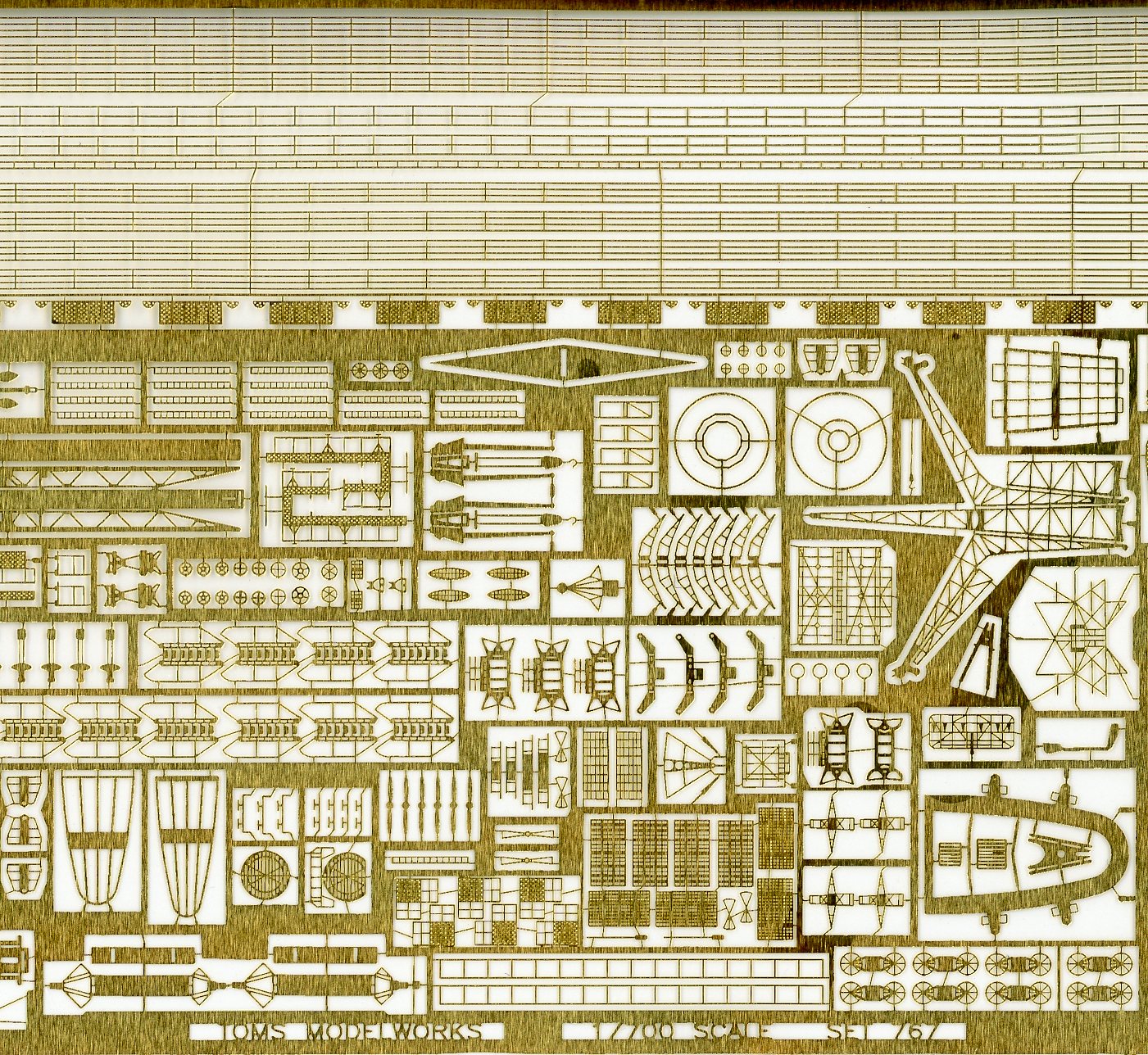 Everything is very finely etched, with nice details. The cranes and the platforms for the mast are especially well done. Go easy on the paint, or you will clog the fine mesh on some of the parts. My only comment is, that given the proliferation of 3D printed parts, I would have omitted the 20mm guns, but that is a nit-pick. |