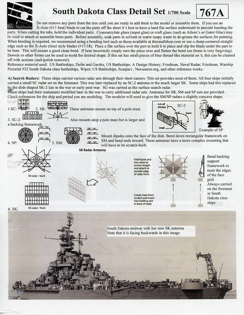 This is Tom's Modelworks Set 767A, 1/700 South Dakota Class Detail Set. The set retails for $26.00 USD, and is available directly from Tom's Modelworks, who'd I'd like to thank for this review sample. Highly recommended! |