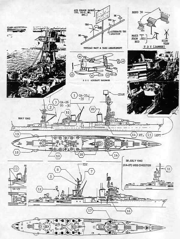 | This set is a great value to the modeler for any of the Northampton Class Heavy Cruisers such as the Corsair Armada Chicago of the Classic Warships Portland. If you are doing an late war Indianapolis such as the Tamiya kit, I would recommend Tom's Modelworks #730 set specially designed for that kit. For a retail price of $7.00 it is a great value for your treaty cruiser. |
