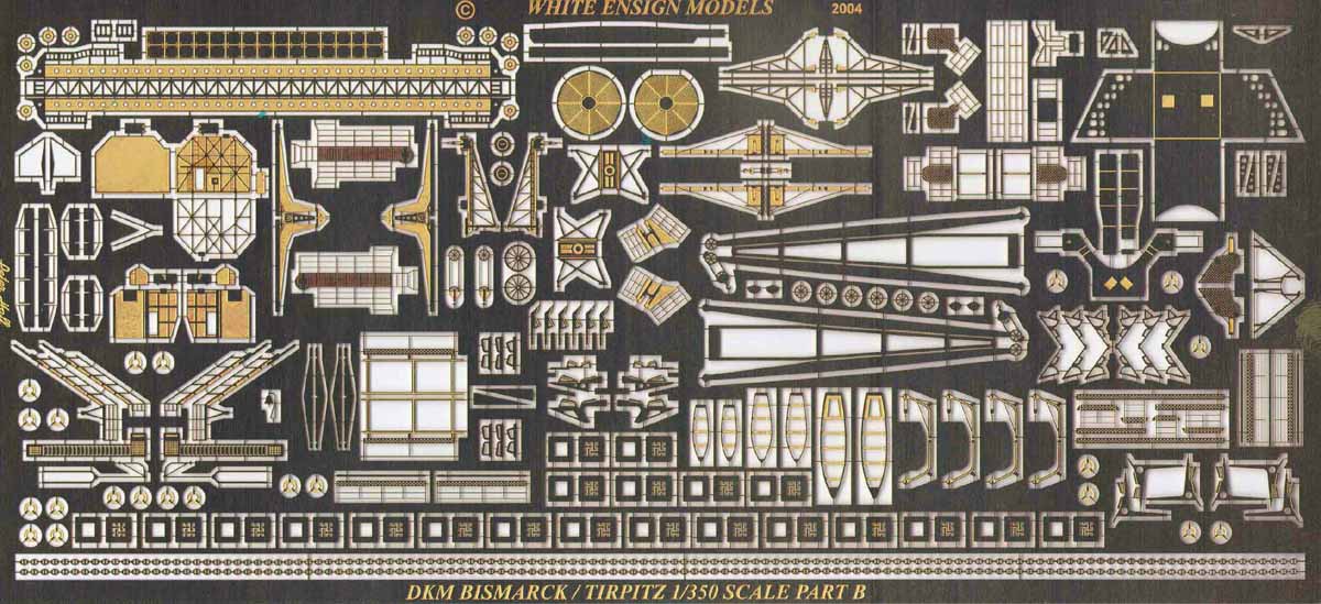 This is set #PE 3529 is priced at £37.40 a fair price for all the details that are included. There are two other sets that compliment this one if you chose to use them. One is the WEM 1/350 Bismarck Class Upper Superstructure Deck Plates #PE 3565, and the other is the WEM 1/350 Kriegsmarine Light AA Weapons #PE 3566. |