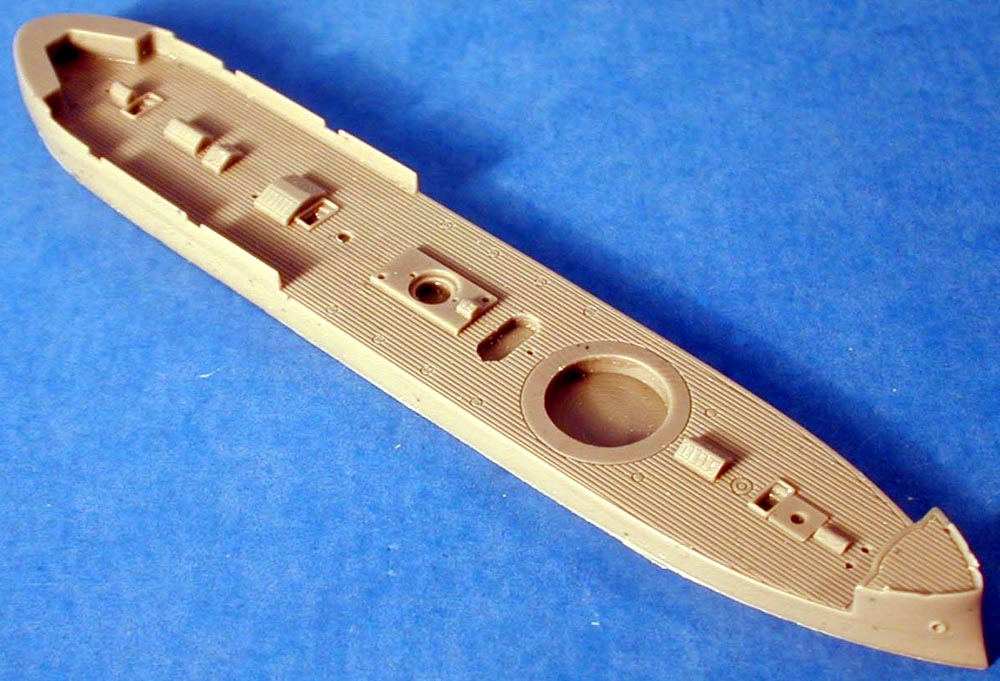 | The single turret is cast with nice detail and literally snaps right into the deck base. Almost no cleanup is needed here. | |||||||||||||