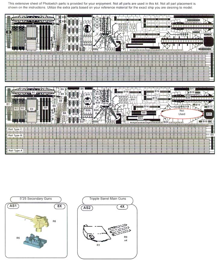 | Main guns are well done with resin cast gun barrels. Note the gun barrels