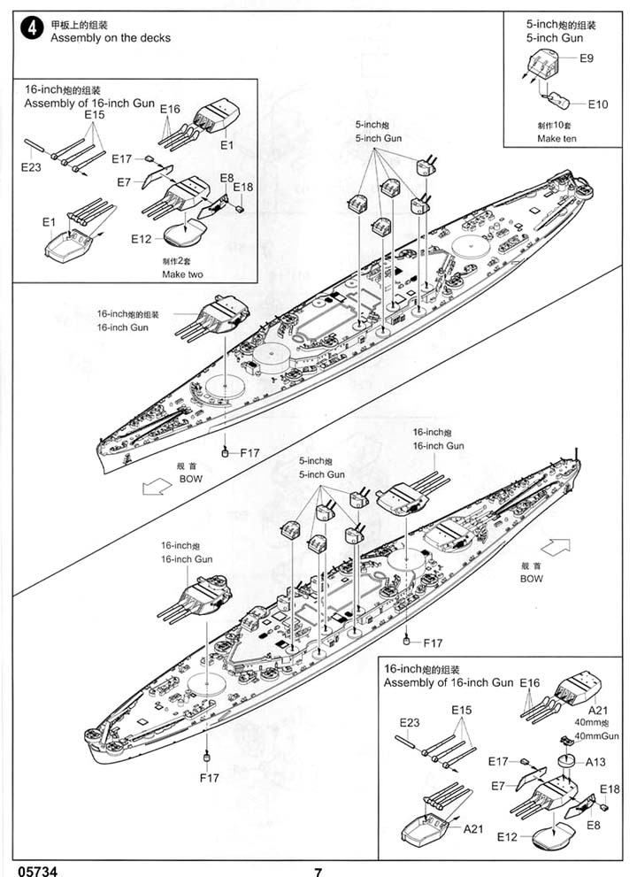 the 16" main gun turrets, bases, and gun barrels. The barrels are included