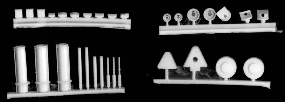 | The upper decks are cast on a thin resin wafer with nice planking detail.