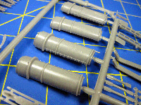 Encore has included 3 types of machined brass barrels in this kit, for replacing the original plastic ones. All of the them have open muzzles and mounting pegs at the rear. |