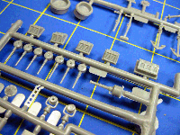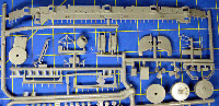 The two sprues which comprised the original kit are shipped in a large plastic bag; this was good packing decision, as there were parts knocked off the sprues loose in the bad. These sprues are the old-style, with no outer framework providing rigidity; the parts support sprues are allowed to flex and flop around, leading to parts being removed or loosely attached. These old parts also show some flash which will require a bit of cleanup before assembly. |