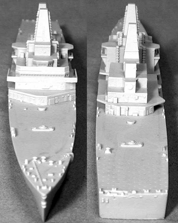 | The parts count is relatively low with so much detail cast in place. The turrets and some platforms are cast on a thin resin wafer that is so thin that just handling it causes it to separate from the parts, meaning they will be very easy to clean up. The ships boats, missiles and launchers as well as all the other detail parts are cast on two runners. Some of these parts are finely cast and care should be used when removing them. Several extra lengths of plastic rod are included to fabricate the mast. | |||||