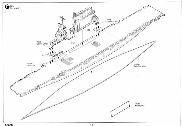 Yet another 1/350 carrier from Trumpeter of China. This one faithfully represents this famous carrier as she was in 1942 at the time of her loss.The kit consists of 20 sprues with 583 parts and a 20 page instruction booklet. |