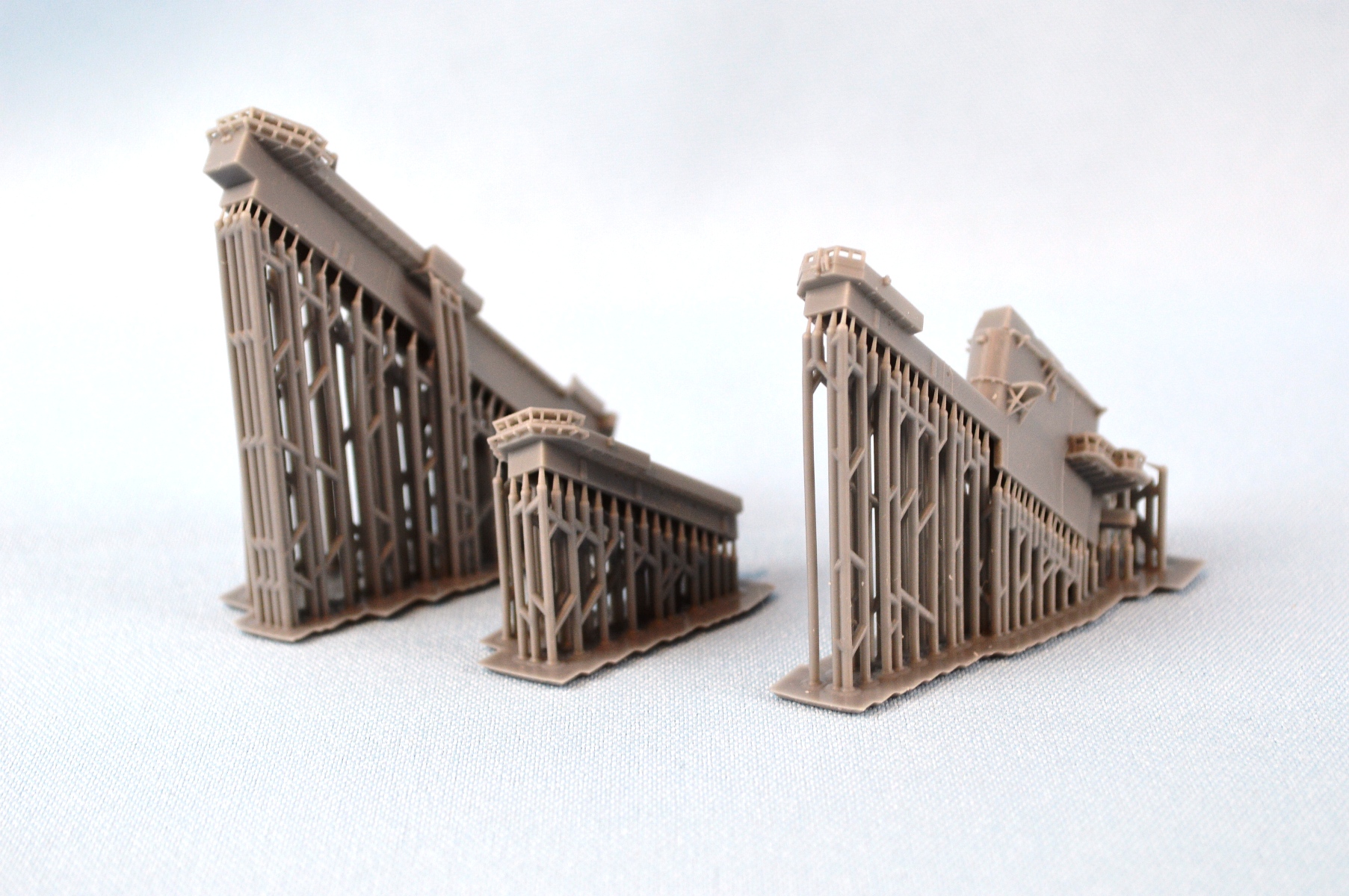 | The three ships elevators - 1 centerline and 2 deck edge - are included as 3D printed parts. You can pose these either up or down - guides for the deck edge elevators are also included on another print raft. The deck-edge elevators will be dressed up with photo-etch (more on that below). | |||||||||||||||||