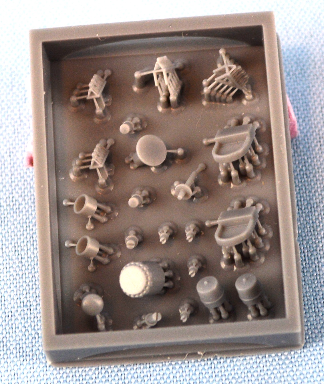 | The kit comes with two different types of directors (and associated platforms): Mk56 and Mk 37. Both are solidly printed, I especially like the radar dishes on the Mk56. The Mk56 directors are on their own print raft, the Mk 37 directors are on a print raft with other parts. | |||||||||||||||||