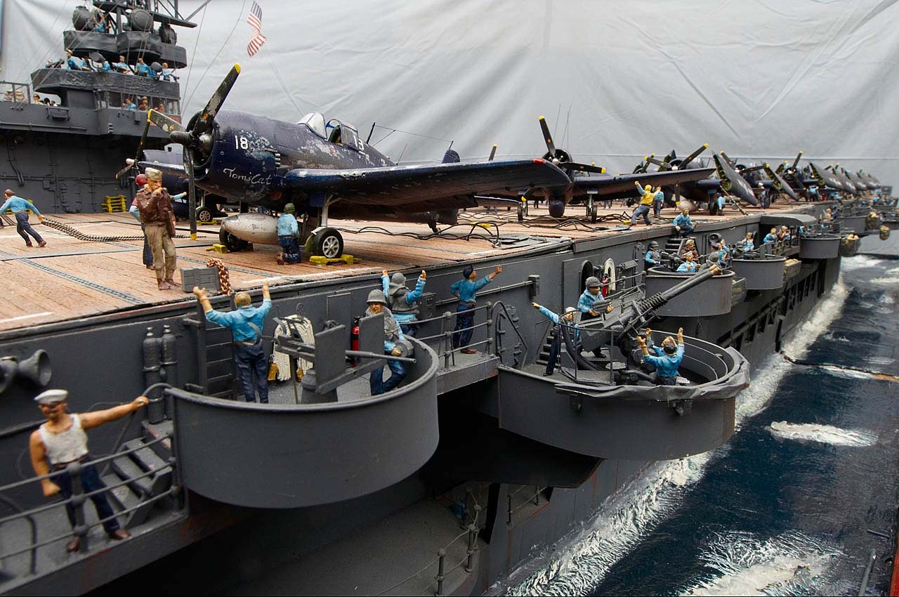 | Here are those aircrafts, for the Hellcat’s I used the Italeri kit minus its wings which were including the folding mechanism self made. | ![]() |