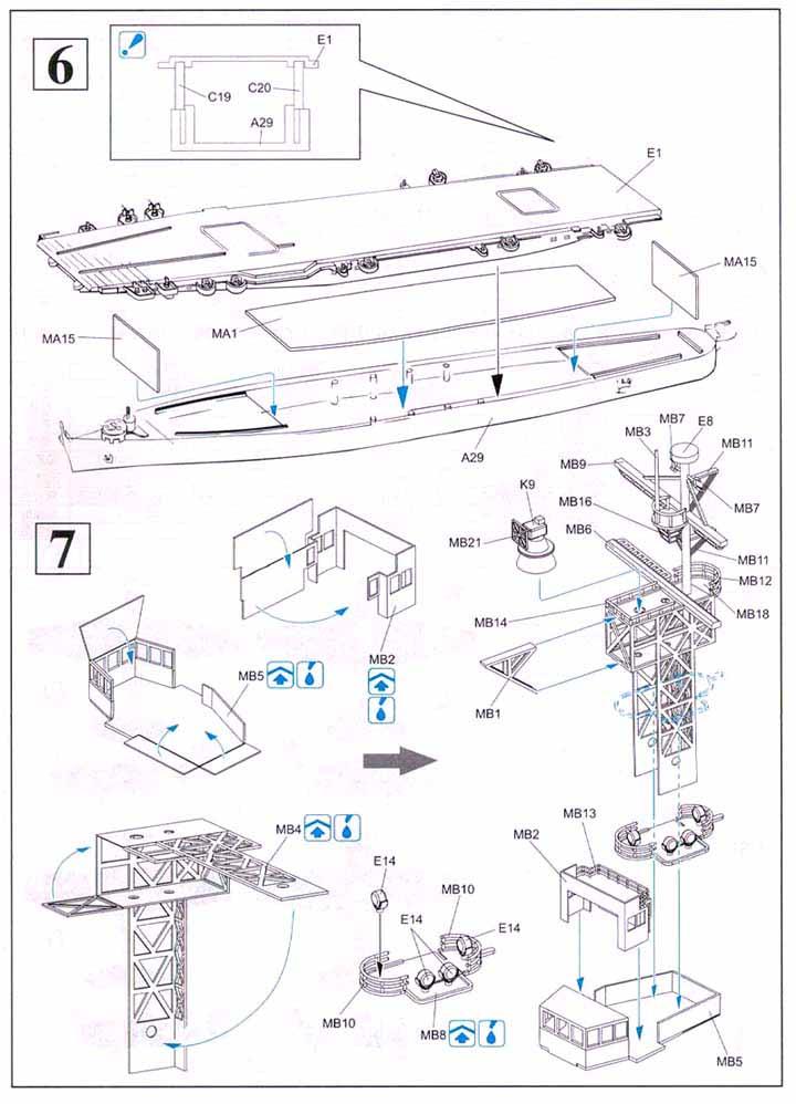 | The flight deck and hanger walls are gray plastic on this kit. The
