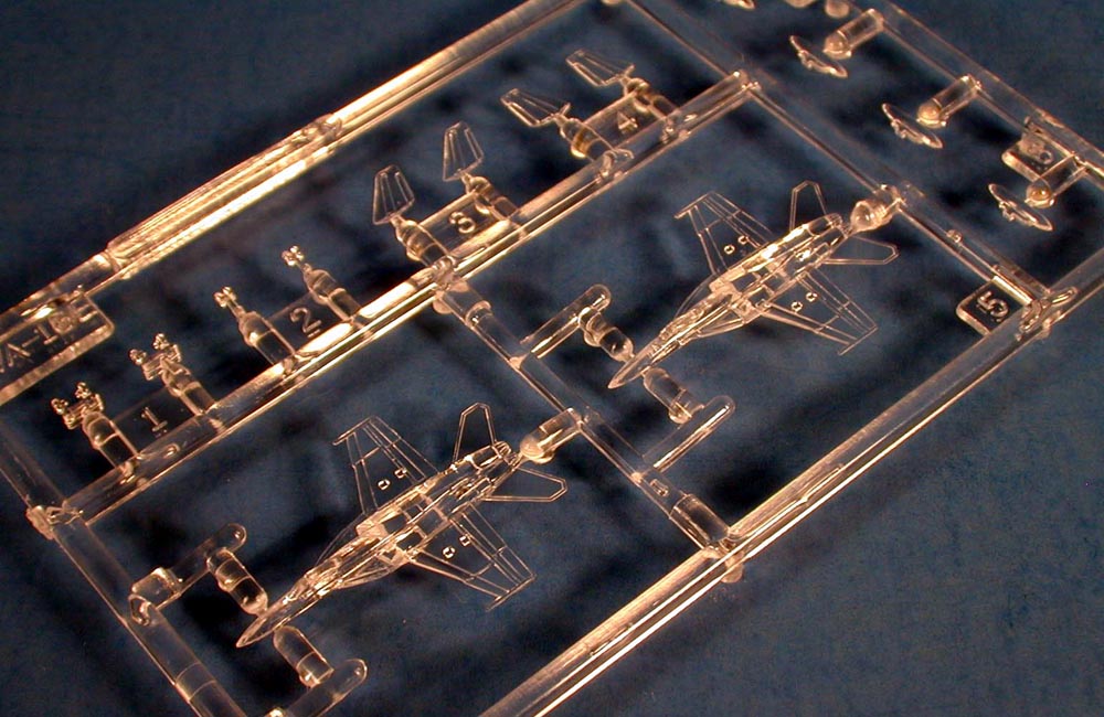 | The aircraft in this kit are molded in clear plastic to