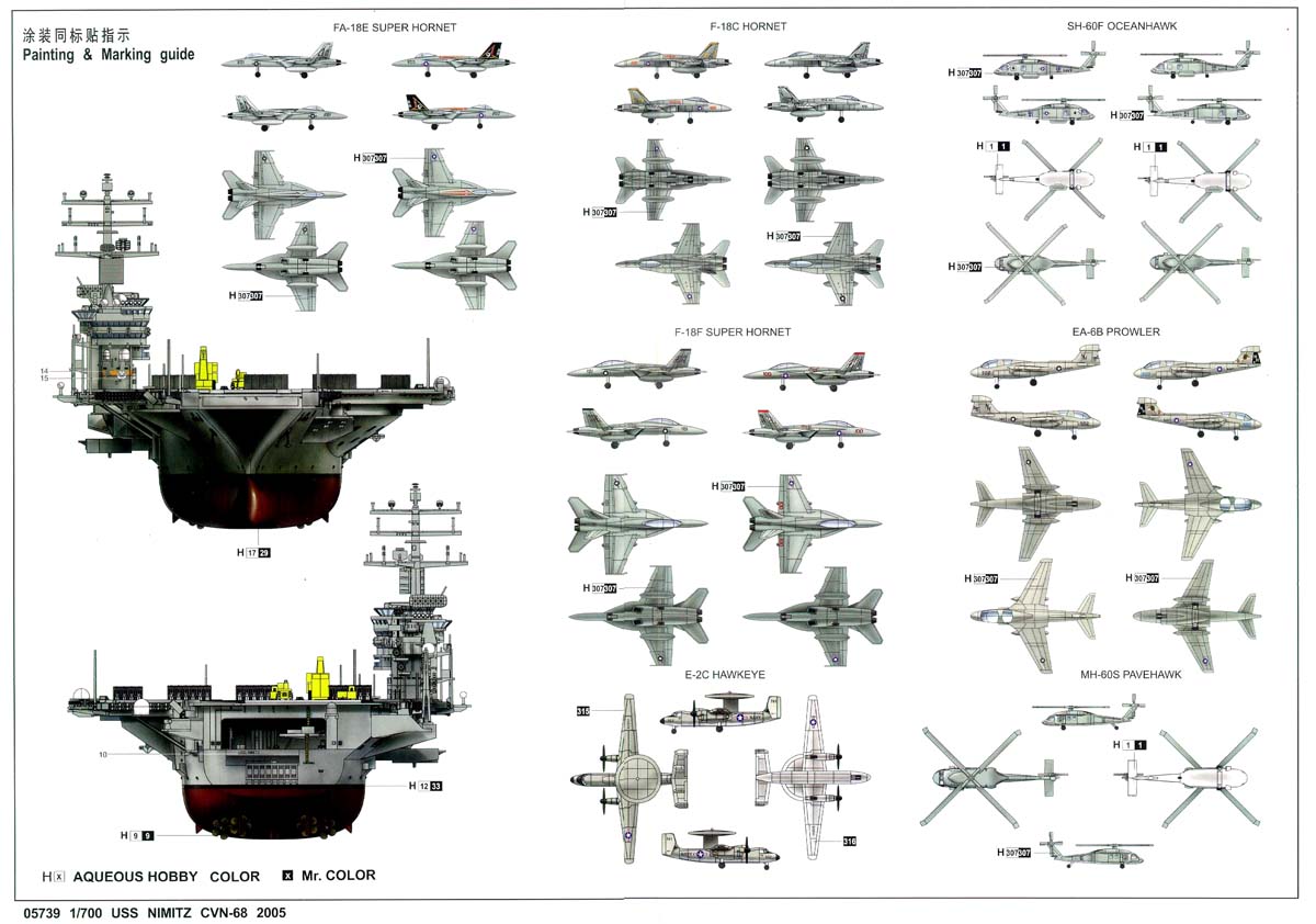 the ship and aircraft. Paint colors and squadron markings are called out