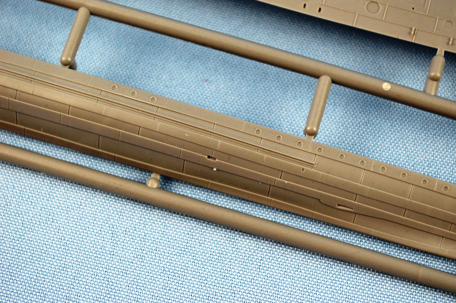 While the molding is crisp, the hull plating is grossly over stated (check the archival photo of Smith below). This seems to be a trend by manufacturers these days, in attempt to add more detail. I'd prefer they just leave the hull blank than have the plating be so overstated. The deck has raised detail to represent plating or weld lines, and is also overstated, but not nearly as heavy as the hull, and should be less noticeable when painted and all the parts have been added.  |