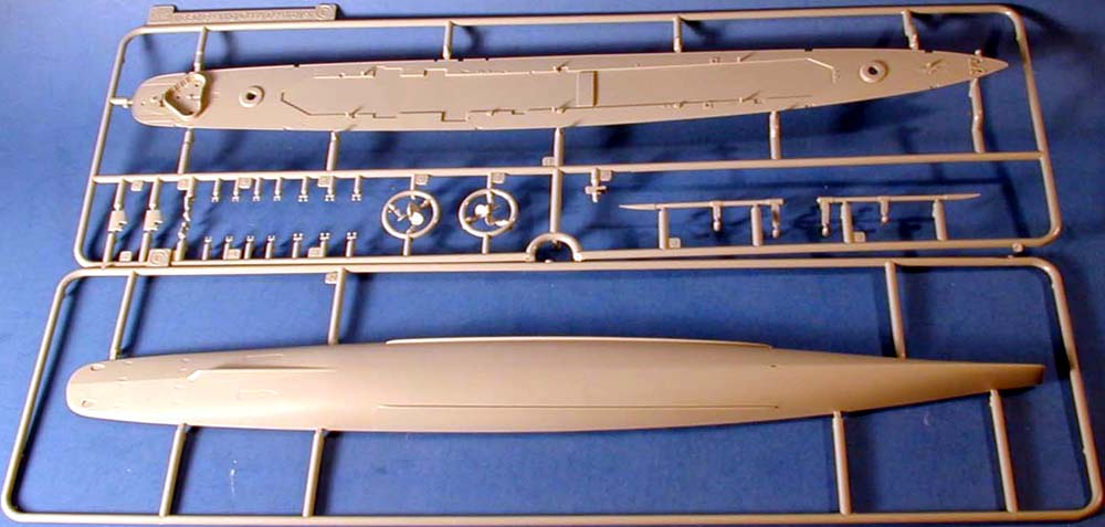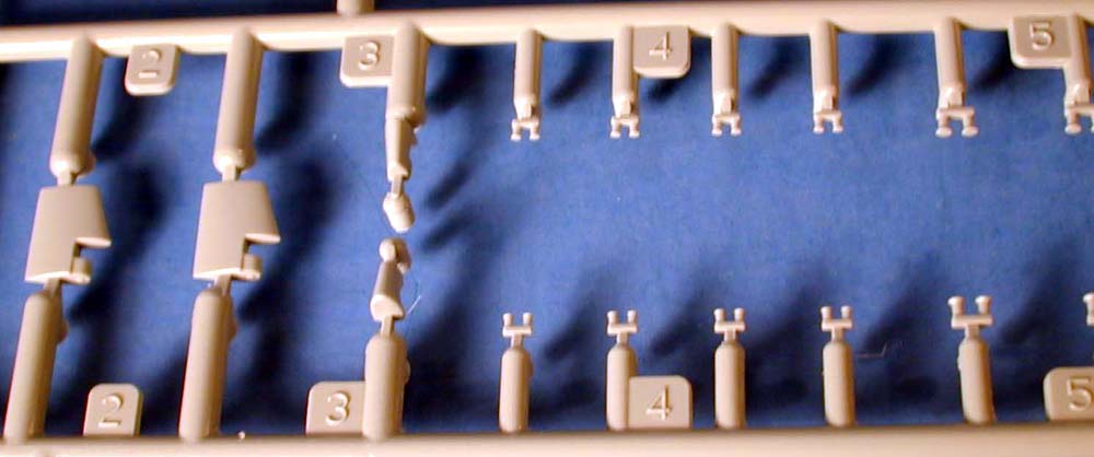 | Two sprues of 5" 38 cal twin mounts are included in the kit. These