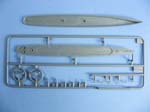 | The third and final bag has 4 different C sprues, which contain the majority of the small details for the ship. Here you'll find the weapons, life rafts, depth charge rafts, boats, davits, torpedo mounts, and a few platforms. The 20mm guns are two-piece affairs, with the base and shield as one piece, the barrels with arm rests making up the second part. Dual 40mm mounts are in three parts. The 5" guns are in three pieces, with a base, the gun enclosure, and the two barrels molded as one part. My biggest issue with the kit is with the 5" gun mounts and their rivet detail. As can be seen from the photos, these are way over scale. Fortunately the rest of the detail on the mounts is far enough removed that sanding to reduce or delete those rivets should be fairly straight forward. |