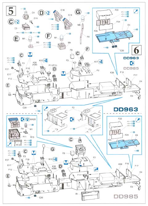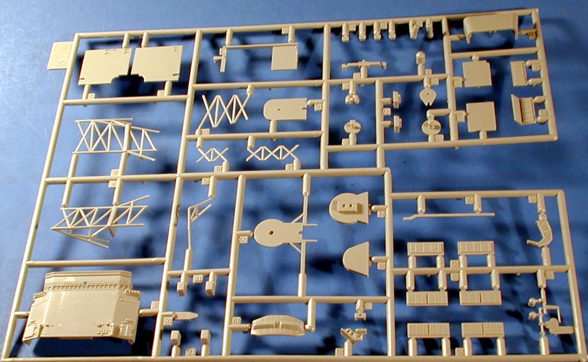 | The superstructure main deck and most of the weapons are on this sprue.