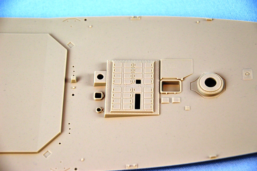 | There are six (6) photo-etch frets included. Included are lots of railings, inclined ladders, the "VLS launchers", platforms, hatches and more. PE fret B specifically says not to use parts 1, 4, 18, 32 and 47, which reinforces my belief that follow up versions will be released. All of the rails, from what the instructions show, are supposedly "drop-fit". | |||||||||||||||||||||||||||||||