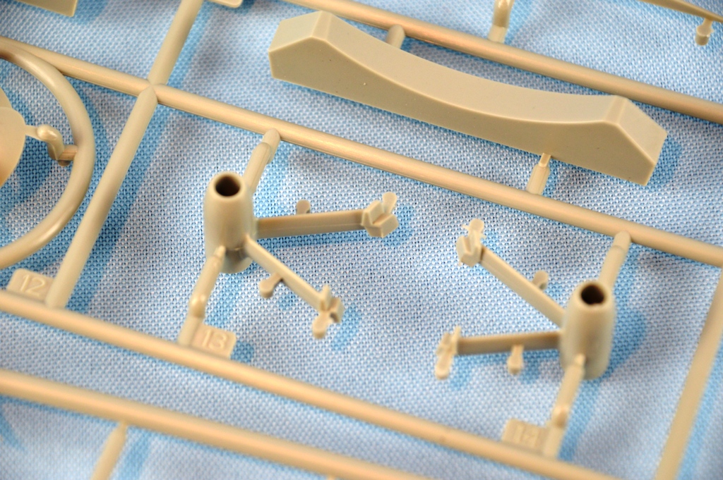 | The struts, shafts, props and bilge keels are all separate parts, and are located on this sprue. As a follow up to his comments on the hull, Keith Bender pointed out that the props are molded in reverse pitch. So while this is a minor point, and they aren't "incorrect", per se, it's not how the props show in most photos and makes them look a bit odd. | |||||||||||||||||||||||||||||||
