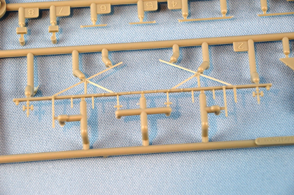 | This sprue contains parts for the mast, including the yardarms. The yards have the correct diamond shaped pattern, used to reduce reflectivity. | |||||||||||||||||||||||||||||||