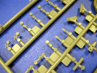 This sprue has some parts unused for Lassen- deckhouses, stacks, and the Remote Minehunting System, but the helicopter deck, 5"/62 low-observability gunhouse and barrel, and some antennas are used. |