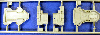 Sprue D has the main battery of 203mm (8") guns and their turrets, along with the 105mm, 37mm and 20mm anti-aircraft guns. The main turrets have lots of detail, with raised rivets and vision ports molded on. The AA guns are a bit cludgy, but that goes with the scale. The triple torpedo launchers are here, some more of the ship's boats and the cranes. Additionally, the searchlights with molded louvers and the distinctive "golf ball" AA directors of the Kriegsmarine are on these sprues. The 203mm turrets have some unfortunate seams not present on the earlier Eugen kits. The torpedo launchers are showing some flash around the edges; perhaps these molds are starting to show some wear. |