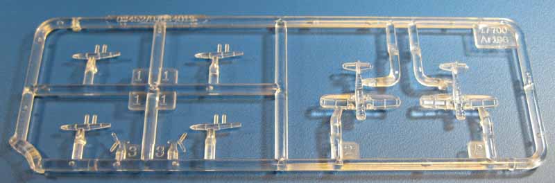 Ar-196A, standard wartime floatplane of the Kriegsmarine, in clear plastic. There are 2 aircraft on the sprue. |