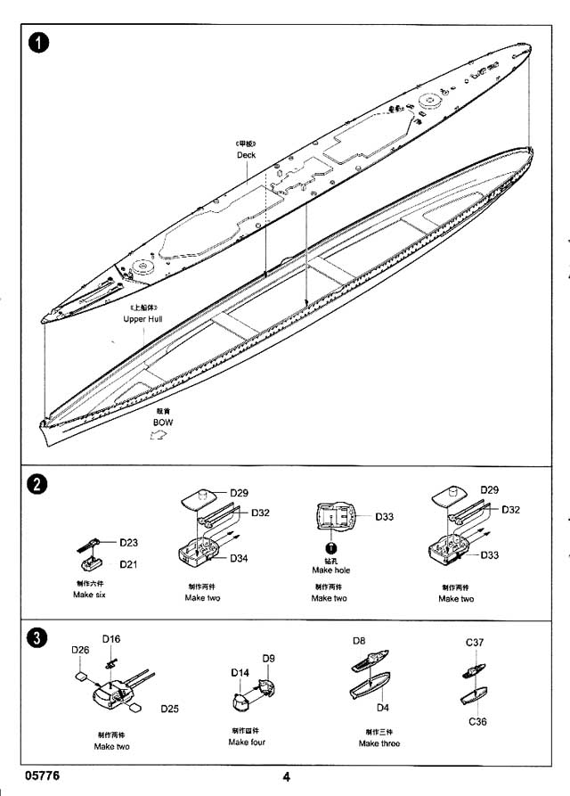 A 12 page instruction book is included, using Trumpeter's standard construction order and methods. There are some options the builder will need to decided upon, so close reading of the instructions is recommended before construction. A full color poster showing the painting steps for Hipper and the floatplane are included. Mr. Hobby, Vallejo, Model Master, Tamiya and Humbrol colors are shown on a paint reference chart. There is no one manufacturer with every color referenced available, so some mixing may be required. The scheme depicted is from March 1941 forward. The pattern shown differs slightly from the box art, and most depictions I've seen. It can be difficult to confirm most Kriegsmarine patterns on any given date, so research and plan accordingly. |