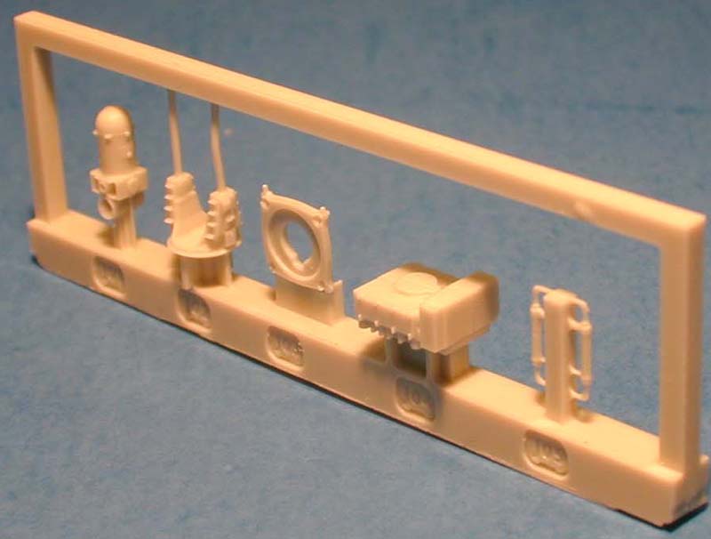 | The superstructure parts are well cast on resin runners. Detail is