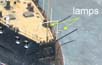 Bouvet when at anchor carried four lamps on a halyard on the aft mast-which was suspended from a tiny small gaff at the top of the mast--on the starboard side . This very small gaff was made using a piece of 1/700 hand railing longitudinal bent to a right angle and attached with CA- with some accelerator on a cocktail stick being wafted about in its vicinity.... because the Super-glue was not being very super …and they...(the gaff(lets !) kept falling off!!! The lamps were very small pieces of brass wire attached to the tan sprue with matt varnish The small blocks on the spars for the (sparse!!) signal halyards were made from tiny circles cut from the WEM Koenig PE brailing davits- very small, lots of them and totally regular--I added them after the halyards had been attached to the yards. The foremast was fundamentally a repeat of the aft mast--except the process was complicated somewhat by the boat boom rigging passing twixt shrouds and halyards. The various boat spar-davits were an adventure of their own, mainly due to the puzzling over rope leads and how it could all have possibly worked! |