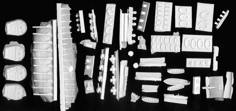 | The superstructure parts fairly detailed and the only real cleanup will be to remove the thick wafer that the parts are cast on. The shapes look accurate but the splinter shields are thicker on this kit than most of today's kits. | ![]() |