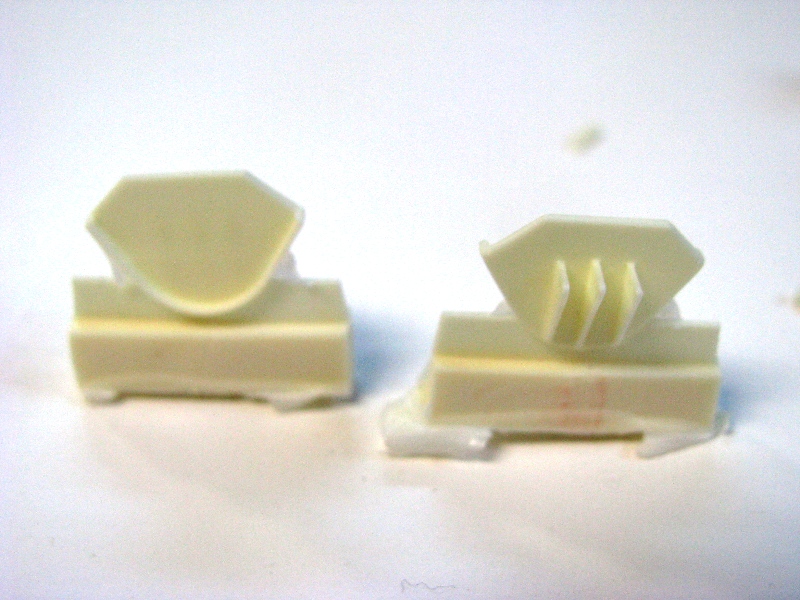 | Being that the hull is cast as a solid piece, the kit doesn't have a lot of parts - there are only 32 identified parts in the entire kit (though some of these parts have multiple copies). The resin parts follow the pattern set by the hull - they are all nicely cast. There is some flash around some of the smaller parts, but this will easily be removed with a sharp hobby knife blade. The island has some nice relief detail on it, and the funnel is recessed almost 5mm, which is a nice touch. The separate parts for the bridge are all well cast - there are nicely recessed windows on one level - and are loose in the bag. That means you don't have to sand them off a wafer or snip them off a sprue. A very nice touch! | |||||||||||||||||||||||||
