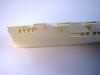 | The hull is one large, well cast piece of resin. It features a myriad of pockets in the hull, AA gun platforms, portholes, catapult tracks and a degaussing cable integrally cast into the hull. The hull - which scales out just ever so slightly long but is spot on in beam - is wonderfully cast. It's very crisp - the only flash is on the thin over pour on the bottom of the hull. The only drawback is that some of the pockets on the aft portion of the ship appear to be open from one side of the hull to the other, something that is not shown in the kit, due to the one piece hull. However, this is a minor quibble. | |||||||||||||||||||||||||
