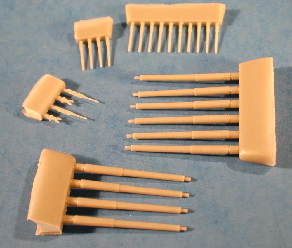 | The main guns are nicely shaped and have plenty of detail included. The casting gate is on the base and doesn't have to be removed due to the way the turrets fit into the openings. The gun barrels are pretty nice for resin and | |||||||||||||