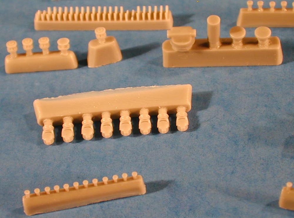 | The small parts are very detailed and it is amazing that they can be cast so finely in this scale. The cable reels and search lights have to be seen up close to be appreciated. My camera doesn't really do justice to the fine detail on them. The only parts that | ![]() |