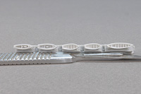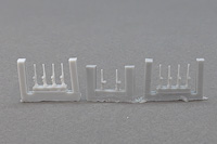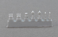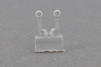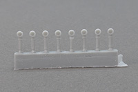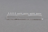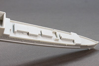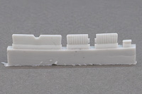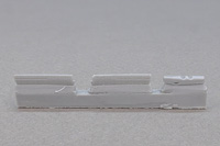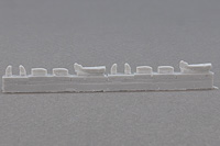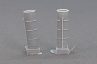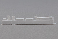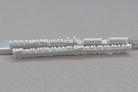 The stacks are particularly well done. The steam pipes and banding on their exteriors are sharply rendered. The stacks are hollow to a depth of .080" (2.2mm), so those wishing to have truly hollow stacks will need to drill them out, but for most, painting the interior black or another dark color will suffice. |