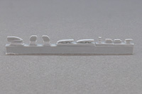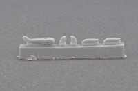 | There are four different aircraft types included with the kit: Short Type 184, Sopwith Schneider-Tabloid, Sopwith Baby, and the Sopwith Type 860. The aircraft are made up of cast resin fuselage, floats, stabilizers and wings, all on resin casting runners. They, like the boats, appear to easily separate from the runners. These parts are thick enough to handle without accidental breakage, but thin enough to convey some detail even at this small scale: the wings of the Type 184 show rib detail. The instructions show exploded-view drawings of the aircraft, which are made up of resin and photoetch struts and props, therefore assembly should be straight-forward. The Sopwith Baby fuselage components and one of the Type 184 wings have some casting deformities in my sample, but nothing a little sanding stick action won't rectify (clean up the small components before removing from the casting gates), but the other pieces are very clean and sharp. Even though the parts are clean, these aircraft are going to be fiddly to assemble. In my opinion, I think they'll be the most challenging aspect of the entire kit, but they should look great once finished. | ||