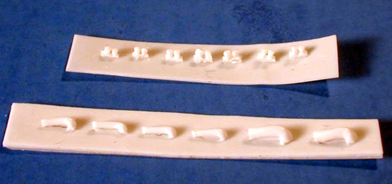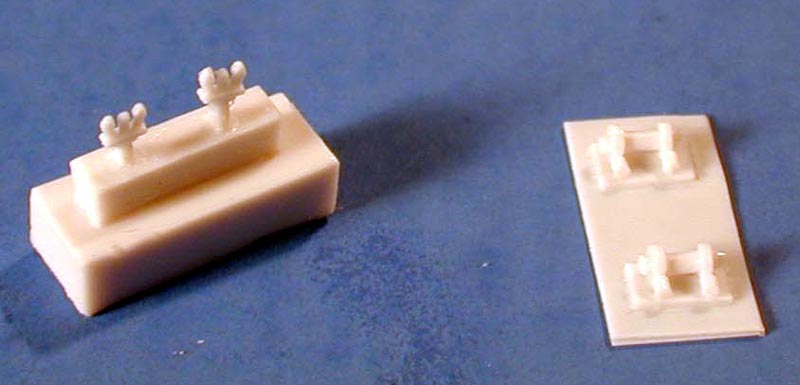 | Superstructure parts include a funnel with hollowed out end, pilot house, bridge deck, and wheel station deck all nicely cast. A couple of winches are provided along with vents, anchors and lifeboats. | ![]() |