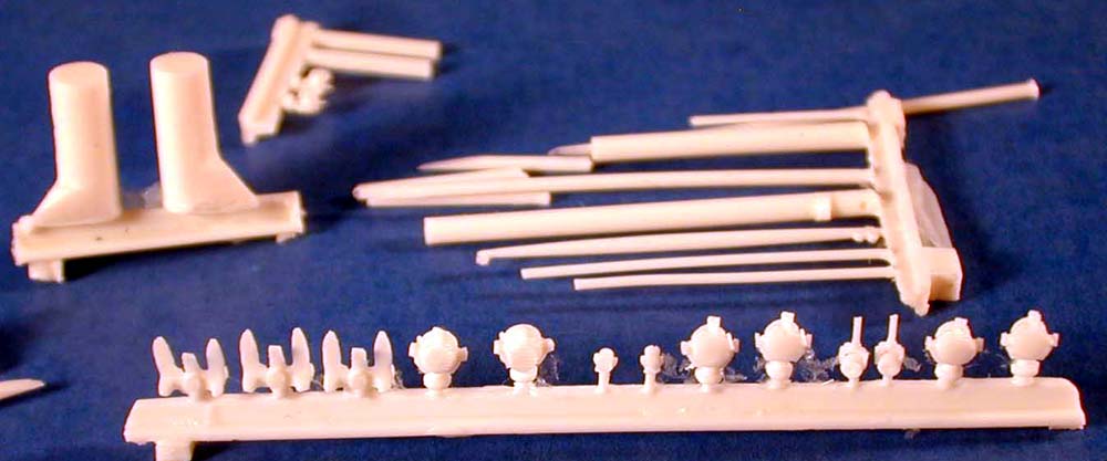 | The metal parts consist of the brass barrels for the 15 inch main guns.